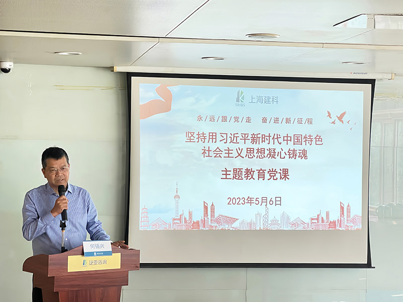 按照建科集團(tuán)黨委關(guān)于學(xué)習(xí)貫徹習(xí)近平新時(shí)代中國特色社會(huì)主義思想主題教育工作的統(tǒng)一部署,5月5日至6日,集團(tuán)黨委委員、副總裁、天津咨詢董事長何錫興深入天津咨詢所屬泛亞公司開展調(diào)研,并為全體黨員講題為《堅(jiān)持用習(xí)近平新時(shí)代中國特色社會(huì)主義思想凝心鑄魂》主題教育黨課。