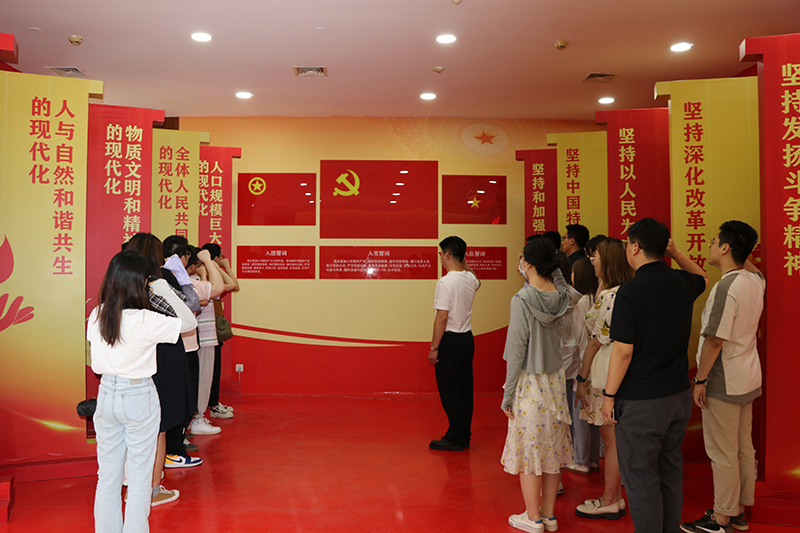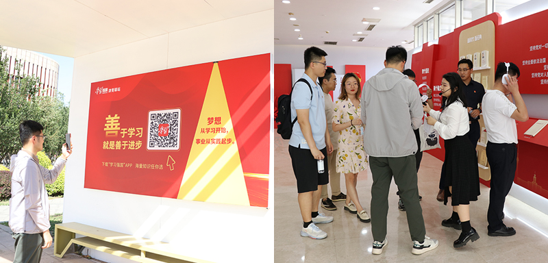 在天津團(tuán)市委宣傳部有關(guān)領(lǐng)導(dǎo)的帶領(lǐng)下,團(tuán)員青年們在室內(nèi)體驗(yàn)區(qū)和室外體驗(yàn)區(qū)沉浸式學(xué)習(xí)互動,實(shí)現(xiàn)了從“云端”學(xué)習(xí)到線下體驗(yàn)的延伸,參觀了學(xué)習(xí)展示、領(lǐng)學(xué)互動、“紅色家書”互動墻、“中國式現(xiàn)代化”隧道、青年打卡以及戶外學(xué)習(xí)園地等展區(qū),體驗(yàn)現(xiàn)代科技與“讀原著、學(xué)原文、悟原理”有機(jī)結(jié)合的多元化學(xué)習(xí)形態(tài)。