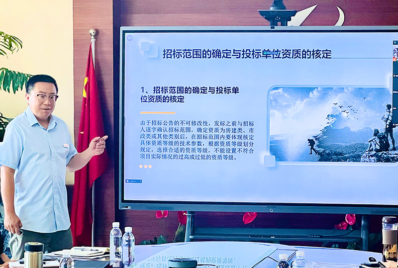 為進一步強化天津咨詢各業(yè)務板塊協(xié)同聯(lián)動,通過分享招標業(yè)務板塊在政府采購和招投標項目中積累的智力資源和實戰(zhàn)經驗,提升各業(yè)務板塊在參與項目投標中應對實際問題的能力,促進工程咨詢服務質量效率提升,2023年7月18日下午,由天津咨詢人力資源部、戰(zhàn)略市場部聯(lián)合主辦、泛亞公司和第二事業(yè)部(招標公司)協(xié)辦的系統(tǒng)專業(yè)共享課(第二期)——《招投標業(yè)務交流培訓》在本部四樓會議室開講。邀請泛亞公司副總經理劉杰和第二事業(yè)部(招標公司)招標業(yè)務二部部長高睿主講,授課采取“線上+線下”形式進行,共計70余名員工參加了課程學習。