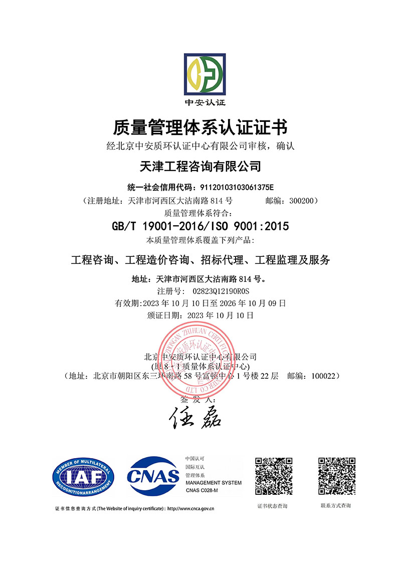 同時,為進(jìn)一步規(guī)范公司內(nèi)部管理,保障服務(wù)質(zhì)量,向管理要效益,天津咨詢啟動了ISO三大管理體系認(rèn)證工作。本次通過ISO三大管理體系認(rèn)證審核,對于公司完善管理體系,推動質(zhì)量、環(huán)境、職業(yè)健康安全管理體系持續(xù)有效運行,進(jìn)一步提高管理水平具有重要意義,不僅有助于增強(qiáng)企業(yè)競爭力,而且樹立了優(yōu)良企業(yè)形象。