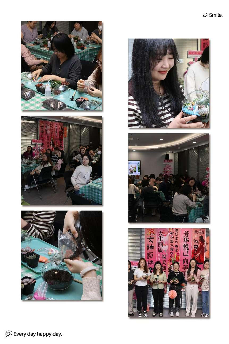 宏亞公司工會(huì)組織了“柔光萬(wàn)丈,自在生長(zhǎng)”微景觀DIY主題活動(dòng),女職工們用靈巧的雙手將方寸玻璃瓶化作詩(shī)意天地,有人打造出“苔痕上階綠”的古典庭院,有人構(gòu)思出“小橋流水人家”的田園牧歌,活動(dòng)現(xiàn)場(chǎng)歡聲笑語(yǔ)不斷,大家在綠意盎然的創(chuàng)意世界中感受春日美好,共度溫馨時(shí)光。