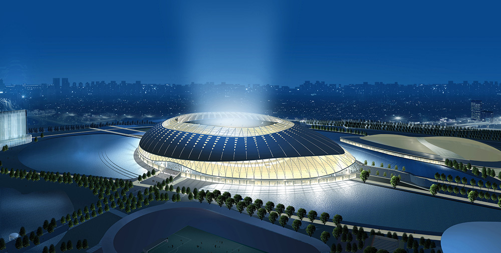 天津奧林匹克中心體育場(chǎng)位于天津西南部的奧林匹克中心內(nèi),占地34.5公頃,總投資14.8億元,整個(gè)中心體育場(chǎng)占地7.8萬平米,建筑面積15.8萬平米,該體育場(chǎng)南北長380米,東西長270米,高53米,設(shè)計(jì)分為六層。看臺(tái)3.48萬平米,8+1跑道4560平方米,訓(xùn)練場(chǎng)2萬平米,草皮場(chǎng)地7680平米,體育場(chǎng)擁有觀眾座席6萬個(gè),主席臺(tái)座席500人,記者席300人,總體可容納8萬人。