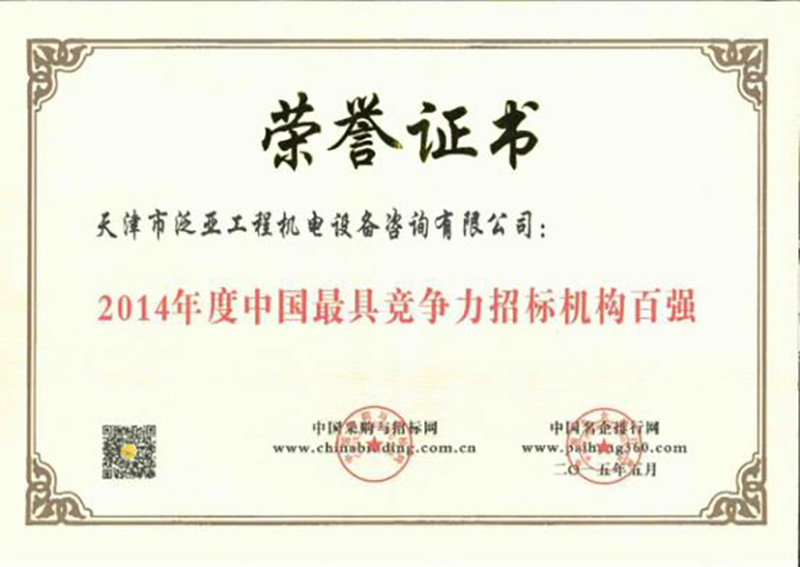 2014年度中國(guó)最具競(jìng)爭(zhēng)力招標(biāo)機(jī)構(gòu)百?gòu)?qiáng)