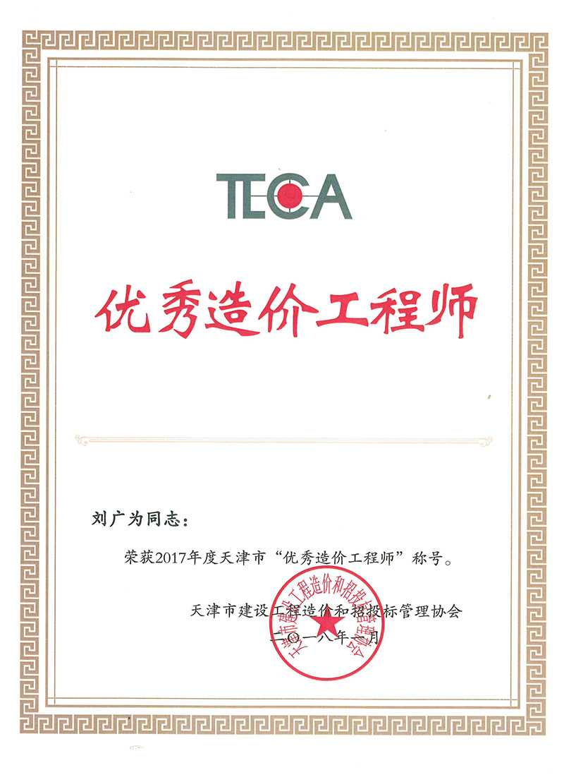2017年度天津市優(yōu)秀造價(jià)工程師